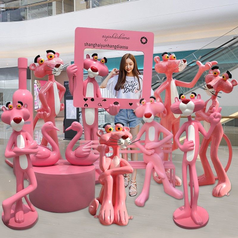 户外玻璃钢网红摆件粉红豹奶茶店公园游乐场商场装饰落地卡通雕塑热门设计联盟服务商