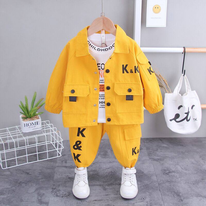 春秋季新款潮流男童帅气套装韩版字母夹克洋气工装外套儿童三件套热门设计联盟服务商