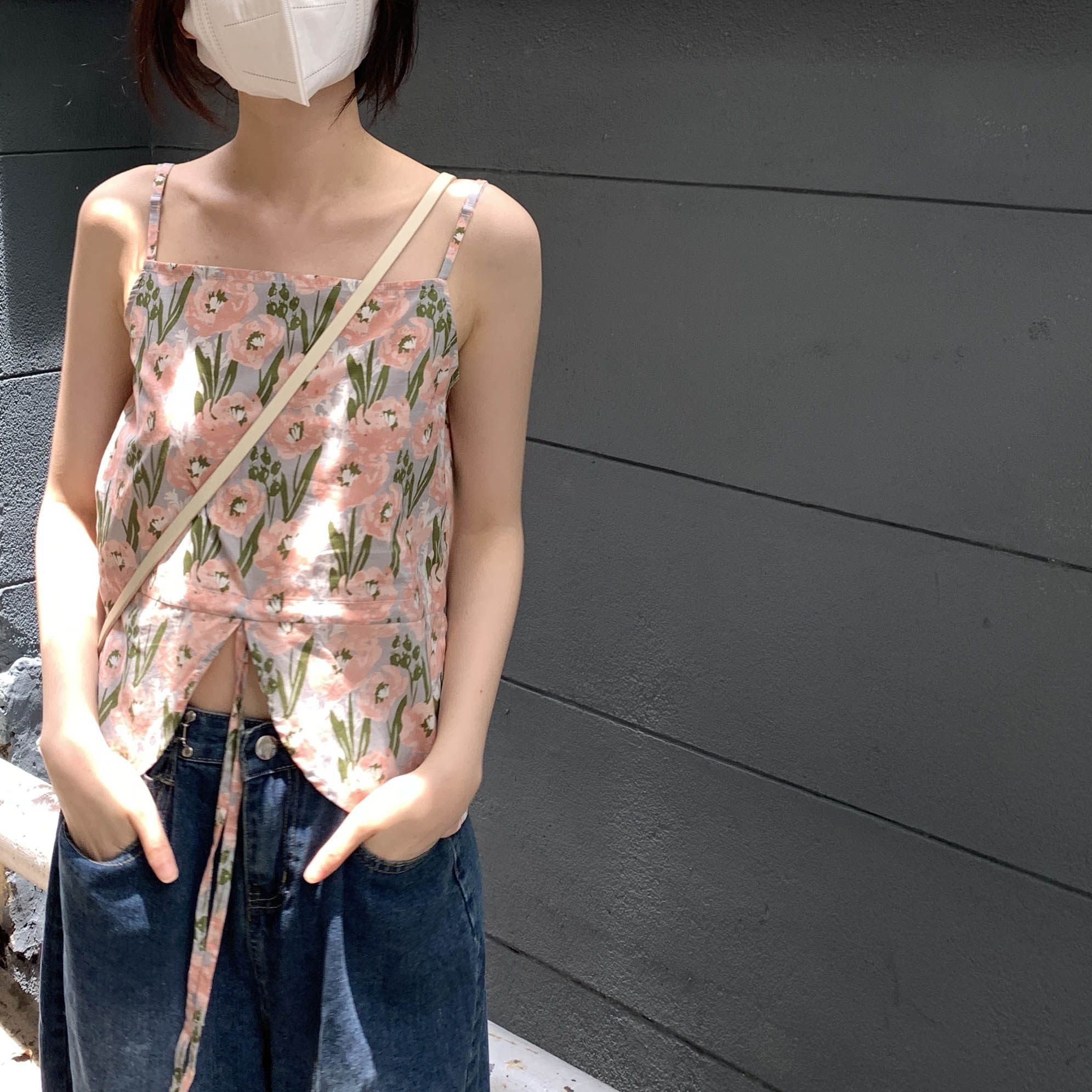 may daily 5/20 夏季 复活款荷叶边粉色小花花吊带热门设计联盟服务商