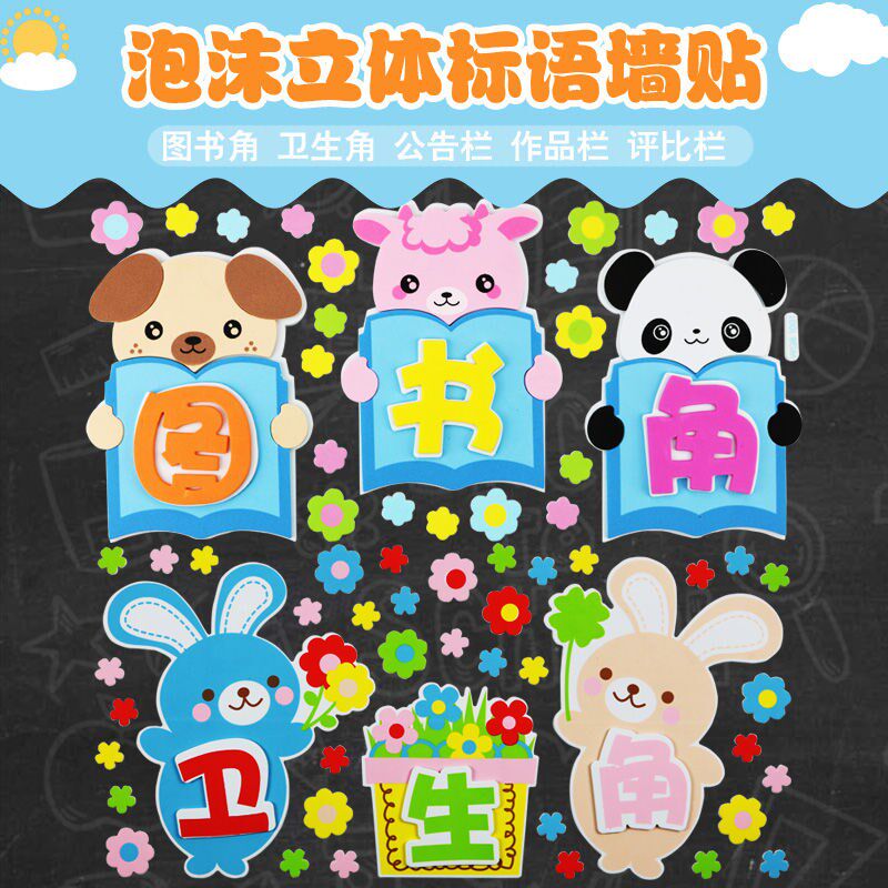 幼儿园文化墙小学黑板报布置装饰墙贴纸幼儿园环境教室图书角卫生热门设计联盟服务商