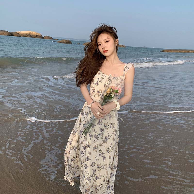 法式碎花连衣裙女夏2021新款收腰显瘦设计感时尚超仙沙滩吊带裙子热门设计联盟服务商