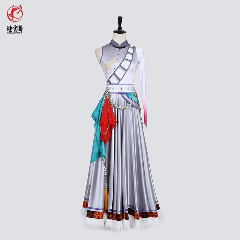 烟云舞西藏族儿童女藏舞藏式广场舞贵拉舞蹈表演服装服饰半身长裙热门设计联盟服务商